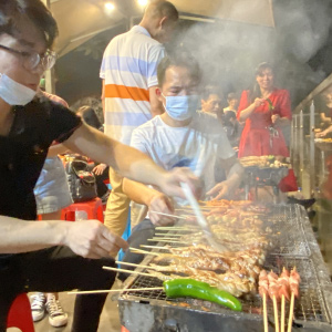 ? ? ? ? 不知不覺一天過去了,玩的豐富,吃的也要豐富!在沙灘邊,吃著燒烤,喝著飲料,聊聊小天,好不愜意!我們的大廚在大顯身手,共享美食盛宴!